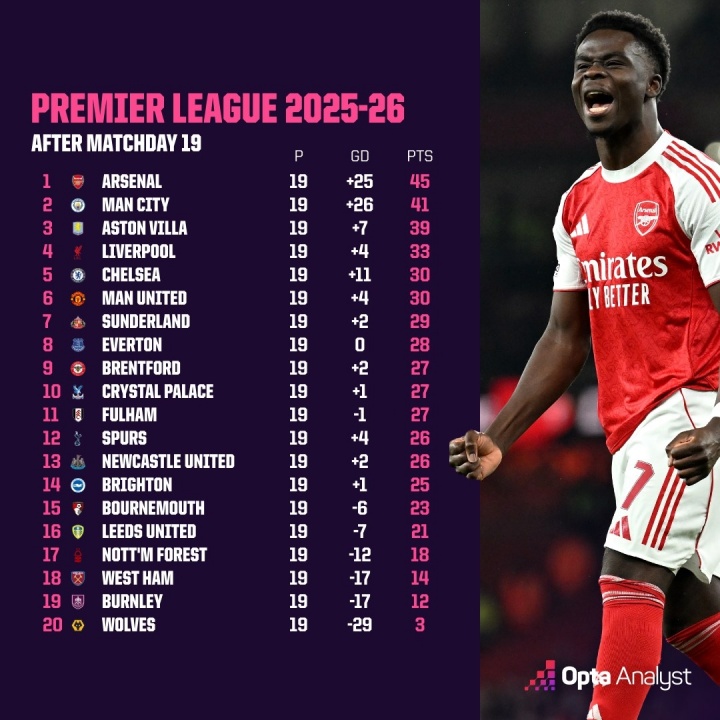 一场天堂一场地狱英超赛季已经过半,第5到第14只差5分